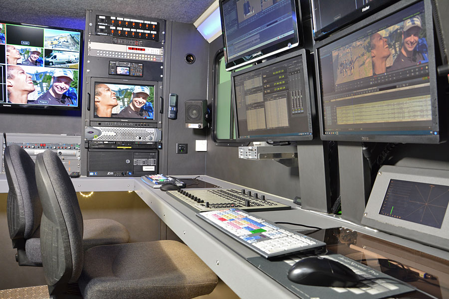 dieser in einen rollenden Arbeitsplatz für TV-Produktionen verwandelt, der einiges zu bieten hat. Zu nennen sind da vor allem zwei vernetzte